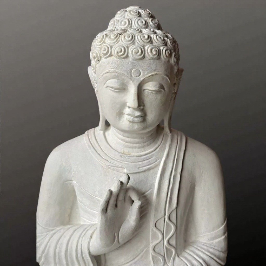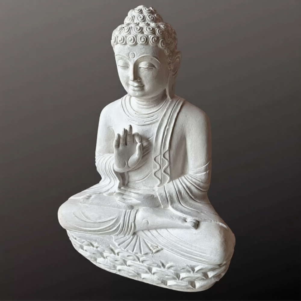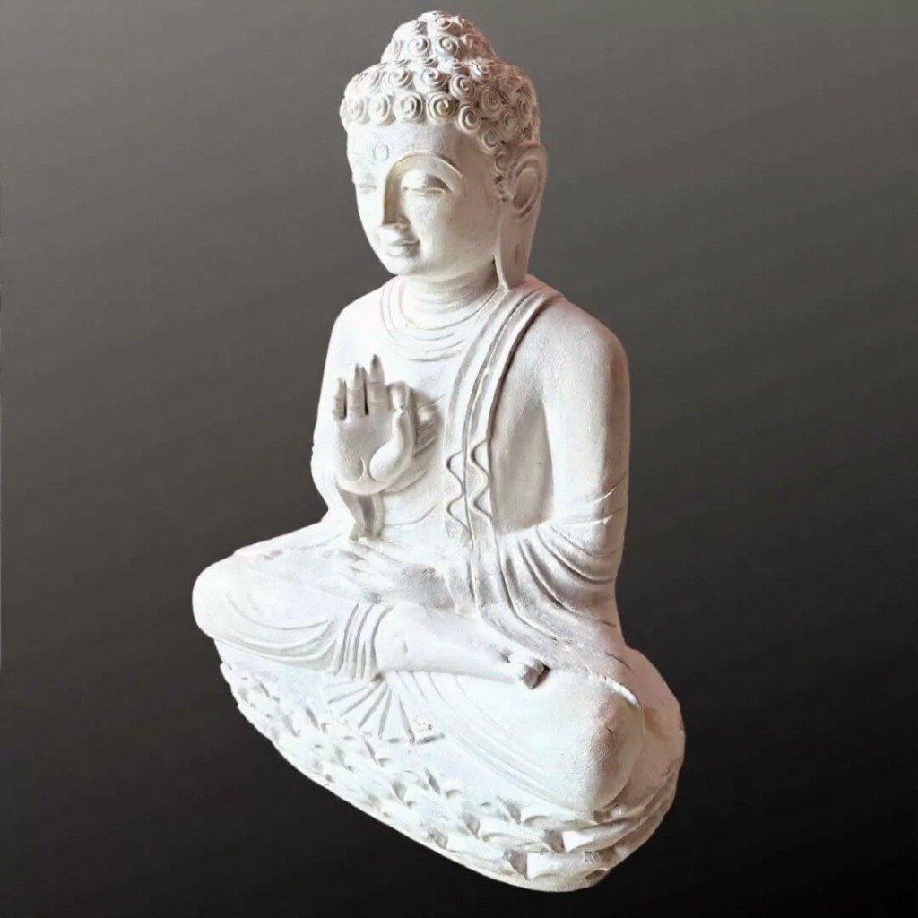 The material used in it is White sandstone. Our best artisans wonderfully craft this sculpture. For more such statues browse our website. If you still don’t get what you want, our artisans will craft your specified designs of the 2 feet white Buddha statue with utmost care and love.