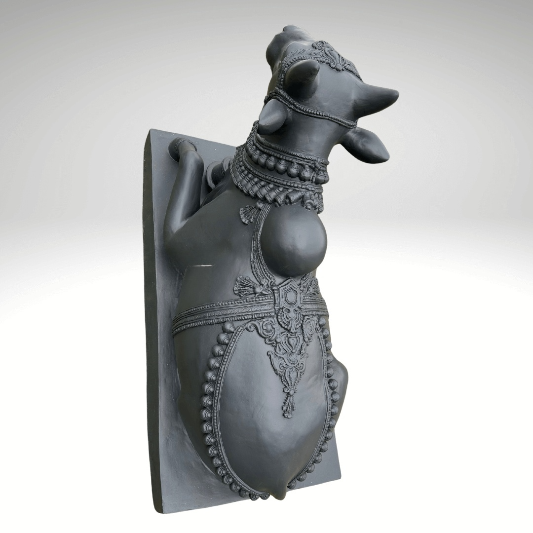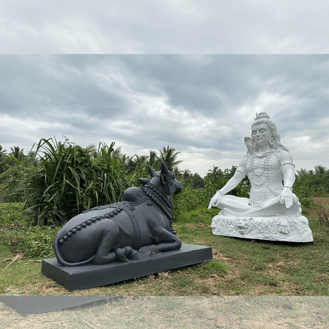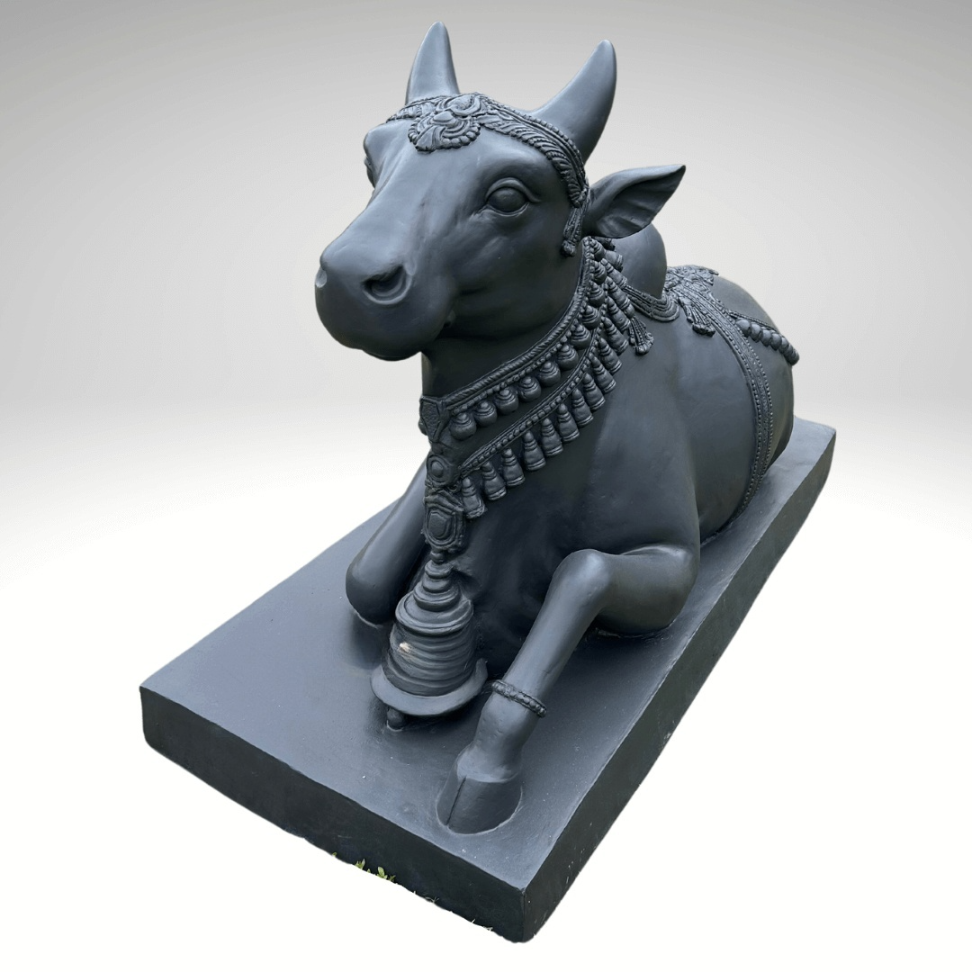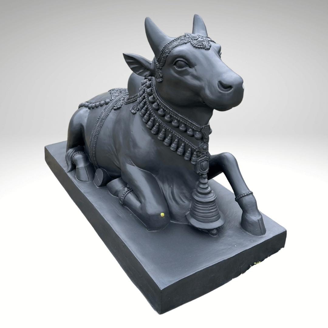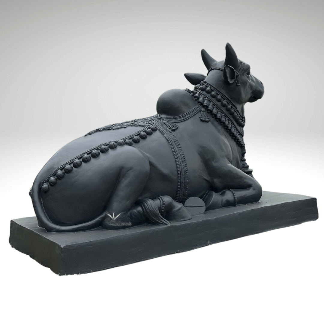 The material used in it is Fibre. Our best artisans wonderfully craft this sculpture. For more such statues browse our website. If you still don’t get what you want, our artisans will craft your specified designs of the big black Nandi statue with utmost care and love.