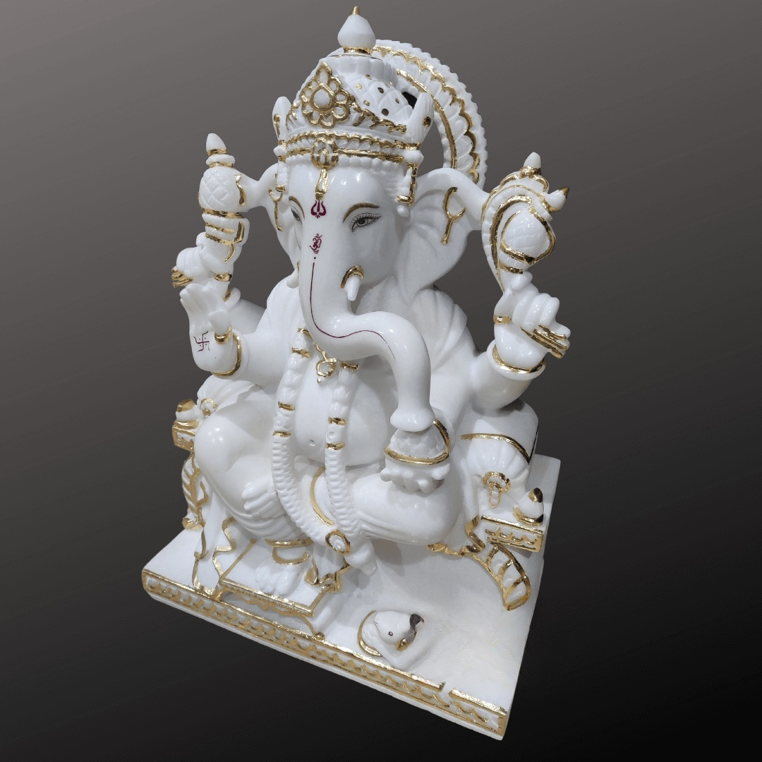 The material used in it is Marble. Our best artisans wonderfully craft this sculpture. For more such statues browse our website. If you still don’t get what you want, our artisans will craft your specified designs of a marble Ganesh Idol for home with utmost care and love.