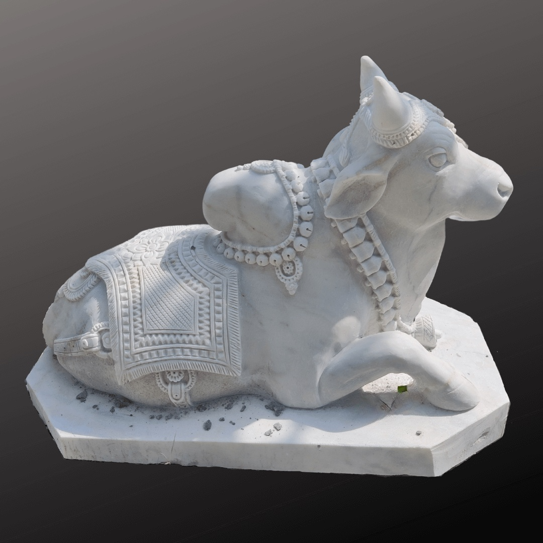 The material used in it is marble. Our best artisans wonderfully craft this sculpture. For more such statues browse our website. If you still don’t get what you want, our artisans will craft your specified designs of Nandi marble with utmost care and love.